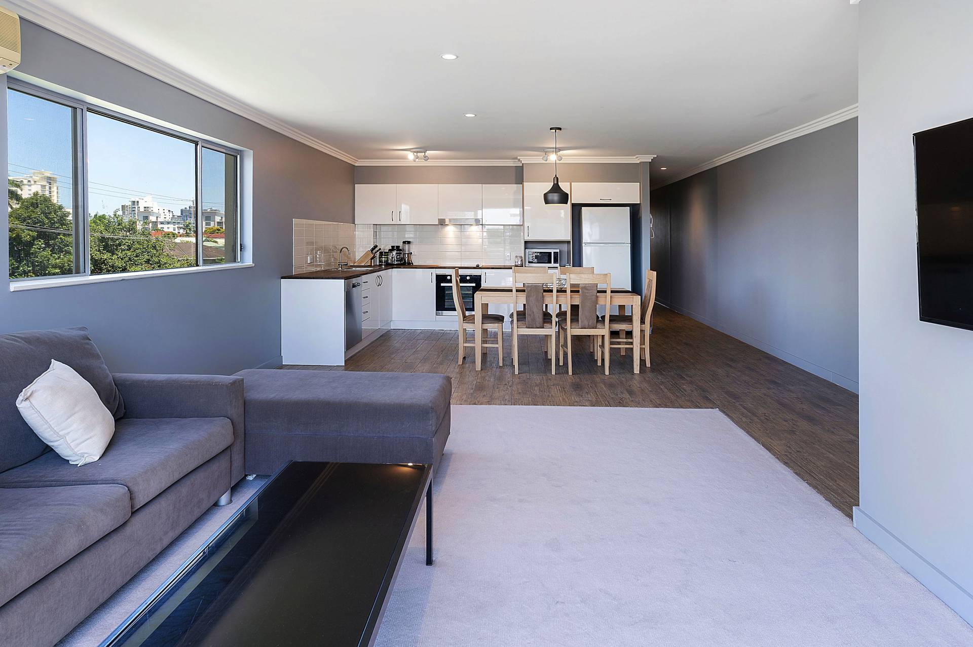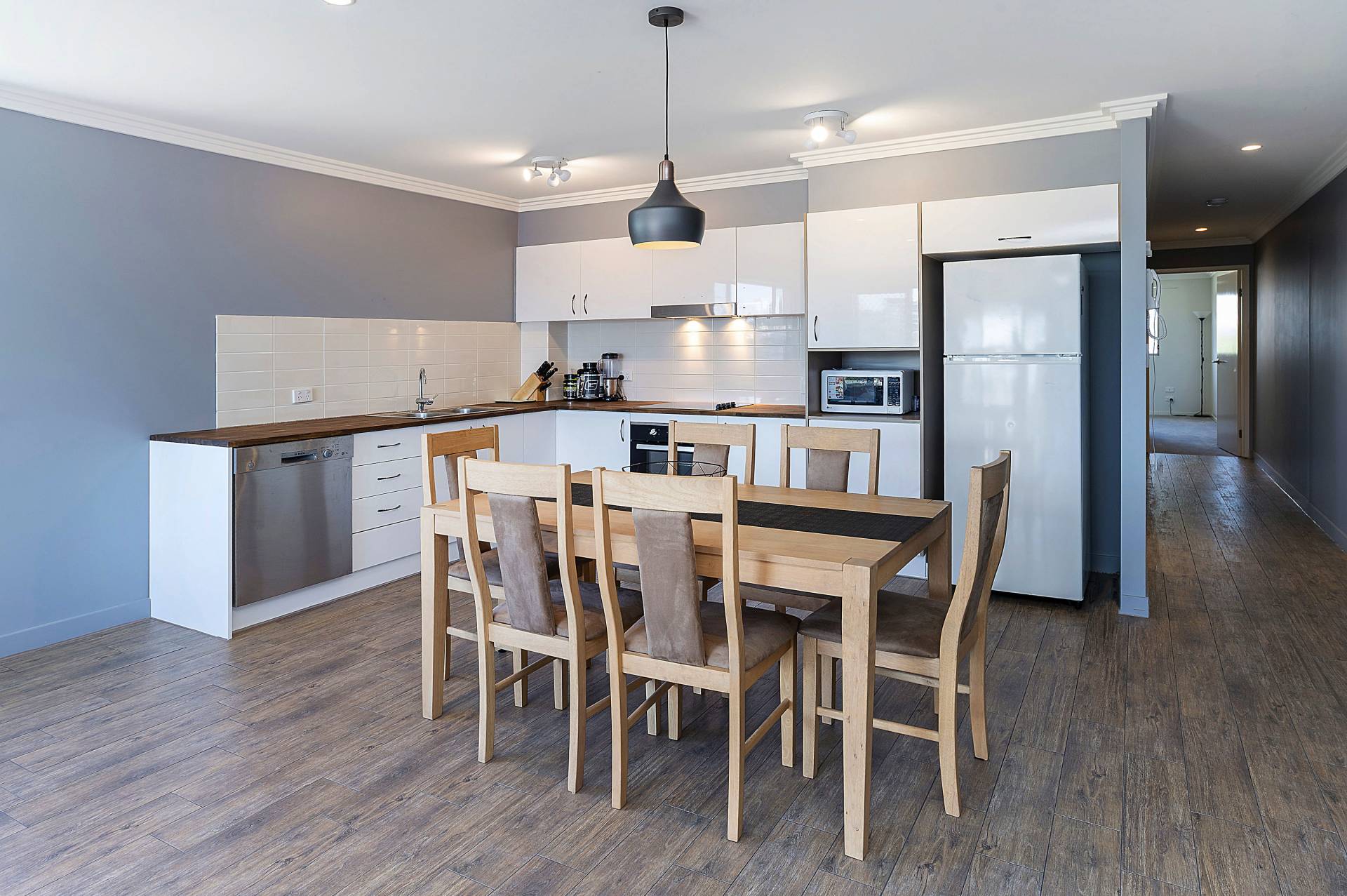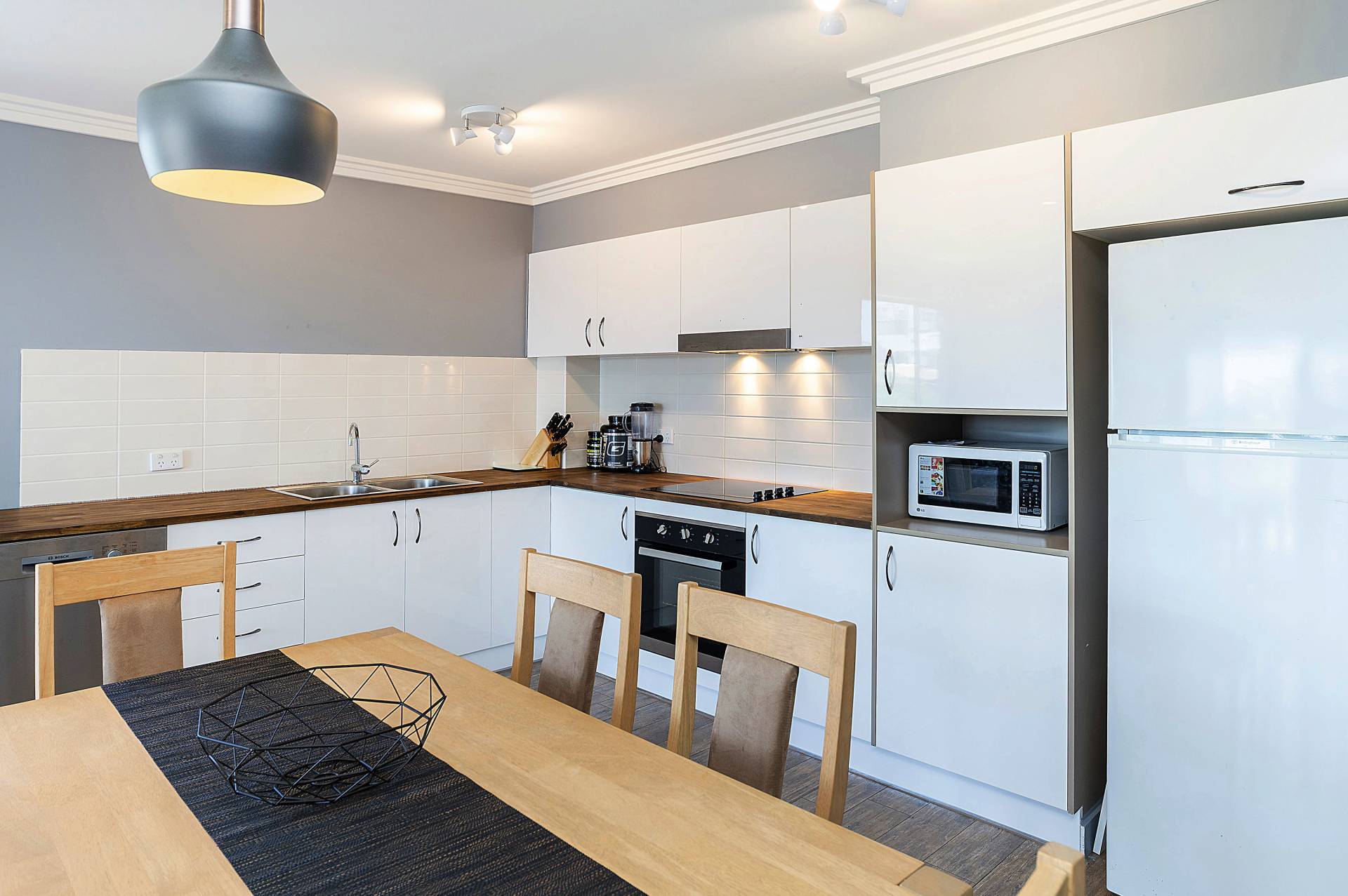 - Large kitchen with plenty of bench space, new dishwasher and oven, plus high gloss finishes