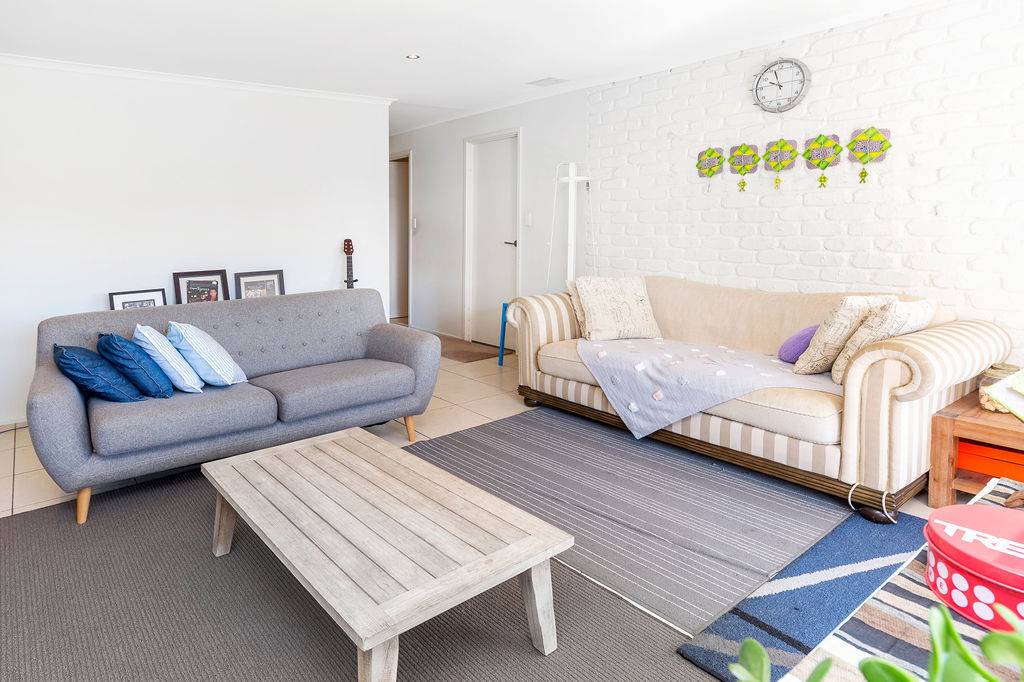 • Spacious lounge room with exposed brick wall (painted white for a clean and classic European finish) leads onto comfortable and cozy dining area with AC
