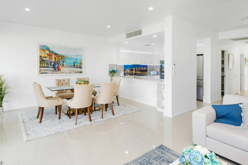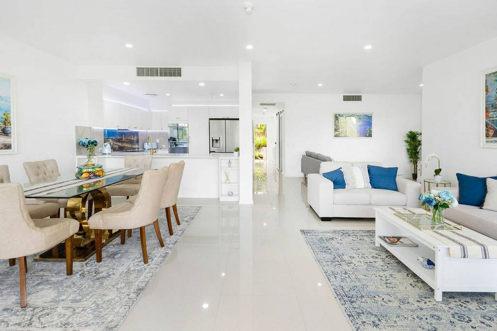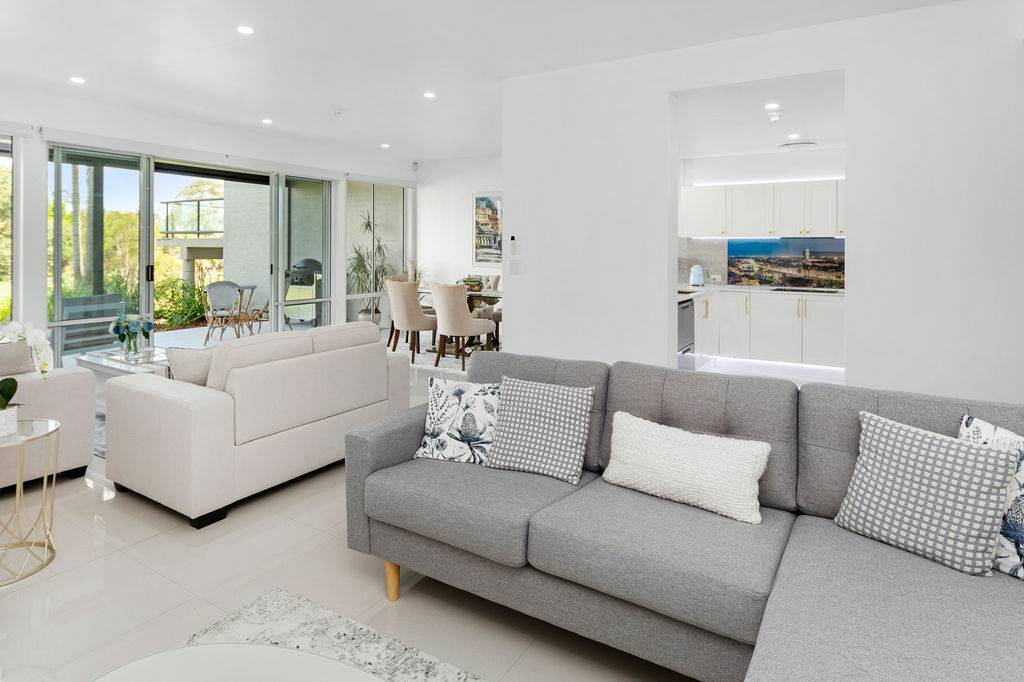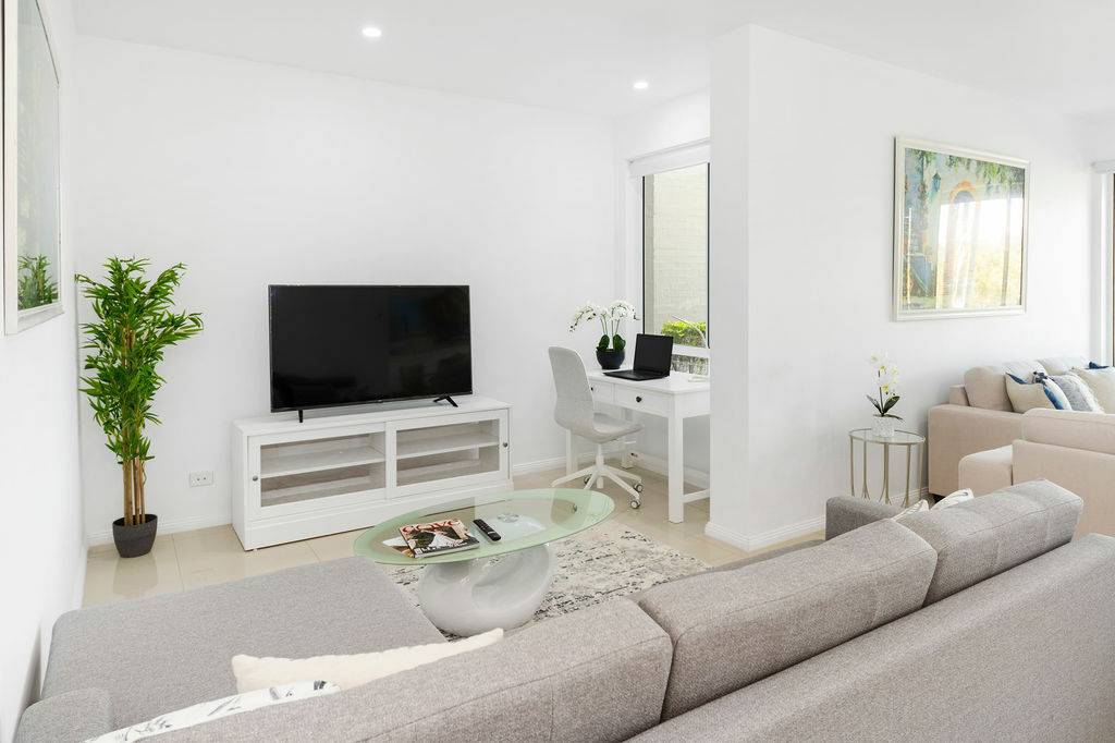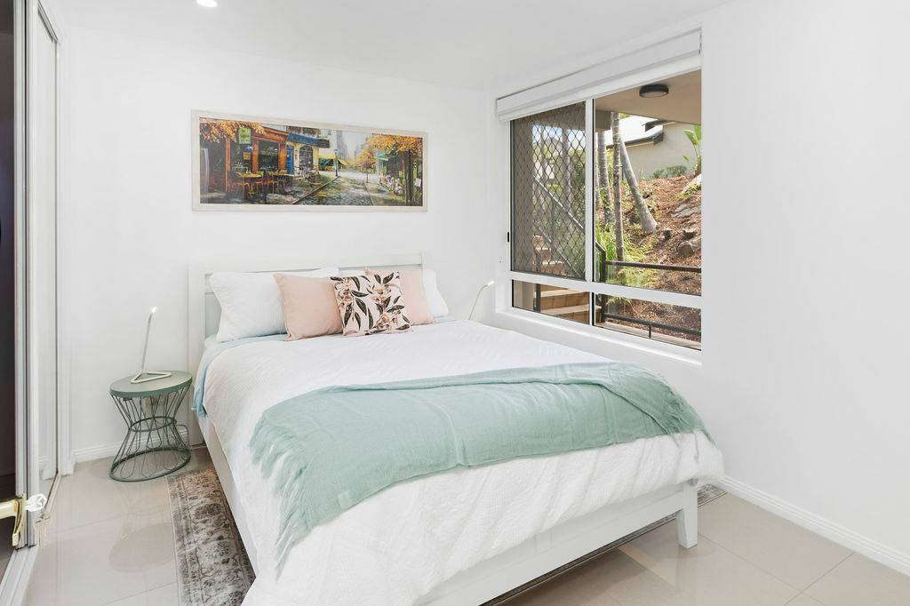 Adjacent to the kitchen is an additional space for a second sitting area or small office for those who prefer to work from home. The shared lounge and dining area boast an abundance of light with plenty of windows that provide additional ambience with sublime views of one of the fairways and its surrounding foliage. This space leads onto a charming outdoor undercover Florida room perfect for enjoying those tropical evenings, lazy Sundays and magnificent sunsets or sunrises. Adorned with remote controlled awnings and accessible by buggy, cosy enough for a one on one catch up, accommodating enough for a small gathering of loved ones. All of this certainly gives new meaning to “diamond in the rough” when such a treasure is right on the edge of a golf course.
