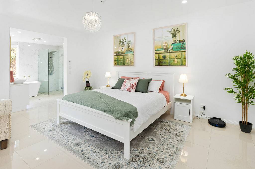 The master bedroom truly is a marvel where spaciousness was clearly considered in its creation. Outclassing many other designs of this caliber, the architect really knew how to make use of every centimeter. And it shows! Equipped with a luxurious and generous WIR and ensuite, there’s plenty of hanging space as well as room to manoeuvre while comfortably preparing for the start or end of the day. The ensuite is finished with marble and tasteful gold-plated fittings and is equipped with: jet blower spa bath, large vanity with 2 basins and 2 mirrors with stylish LED backlit frames, as well as a shower with multiple water outlets and settings for massage.