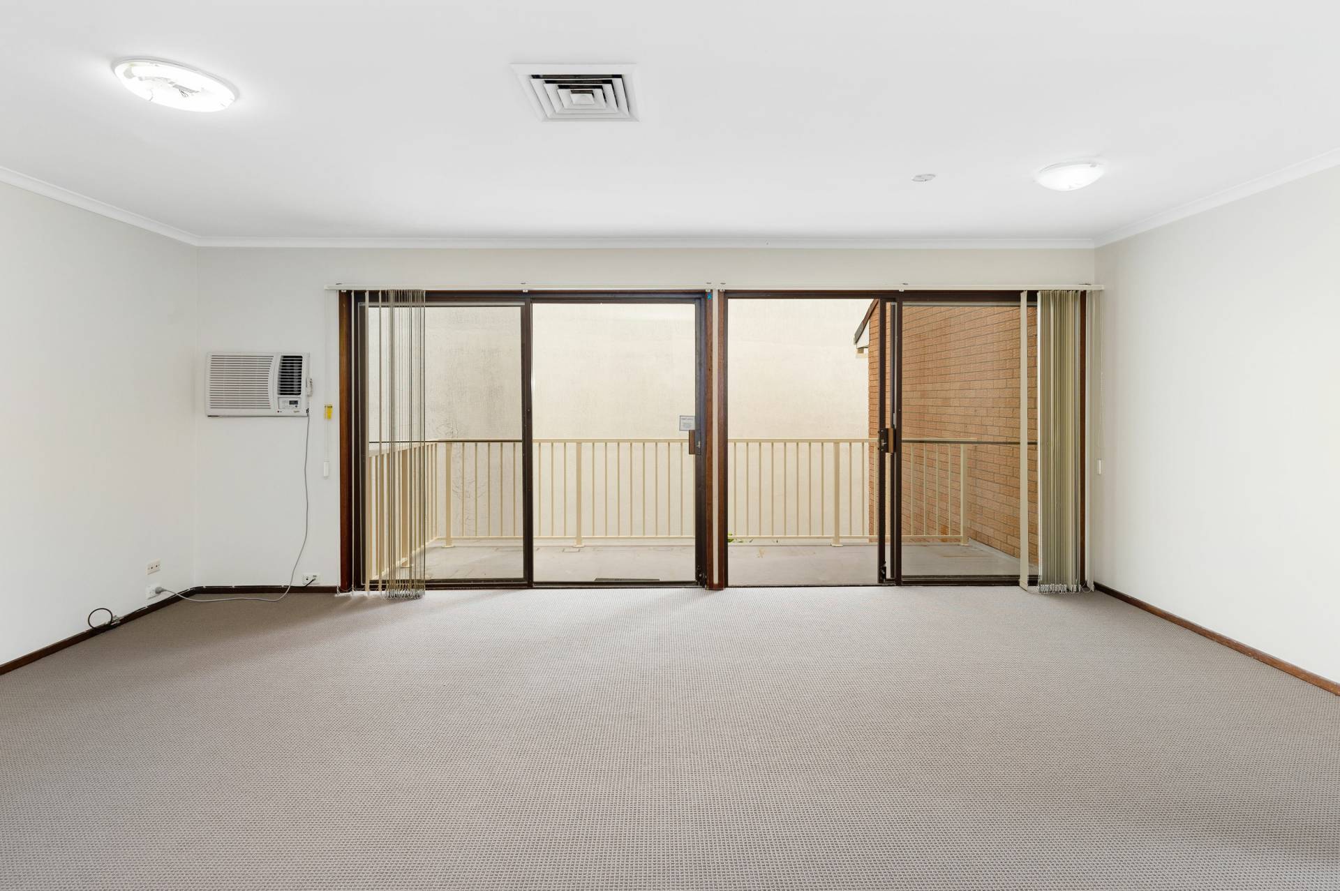 - Large open living/dining area with AC, and balcony