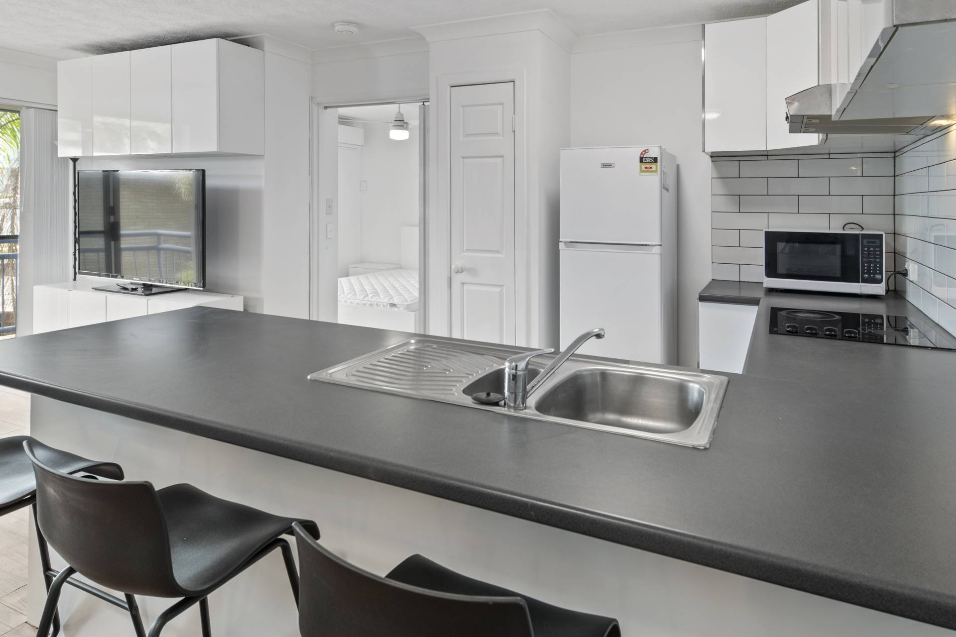 • 1 Bedroom with built-in robe and wall mounted 50 inch TV