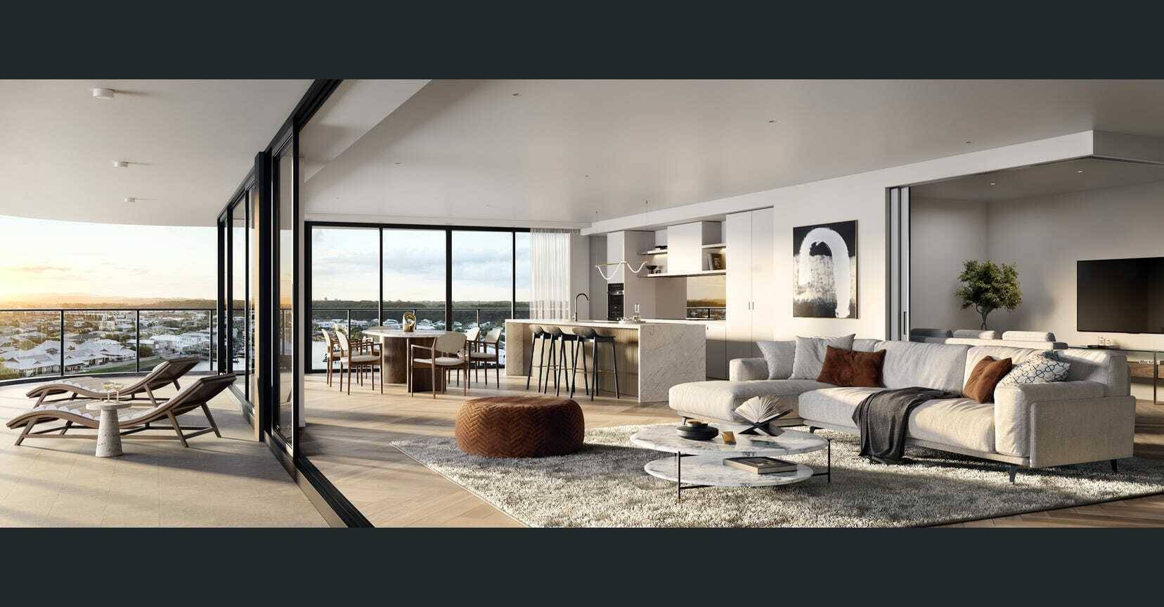 Inspired by the meandering waterways of Hope Island, with thoughtful interior design, these prestigious penthouses support an opulent lifestyle. Subtle and understated, with classic tones and clean lines – the essential elements of sophistication and exclusivity are evident in the timeless appeal of the design. The energy and style of each Skyhome flows gently outside, with the terraces creating a natural extension to the superb living spaces.