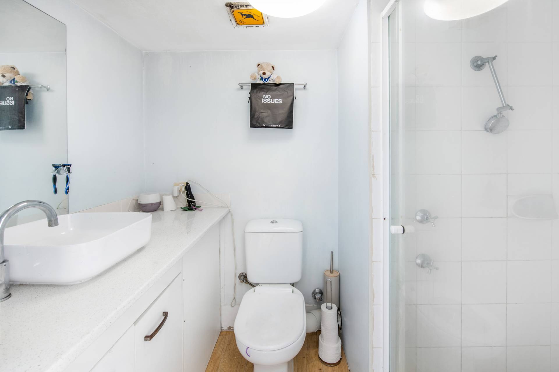 Interior offers an open plan with abundance of natural light, 1 bedroom/living area with timber floating floor, an air-conditioner and access to a balcony with views, 1 bathroom, recently refurbished building with new foyer, new elevator, new individual security swipe tags and secure letter boxes.